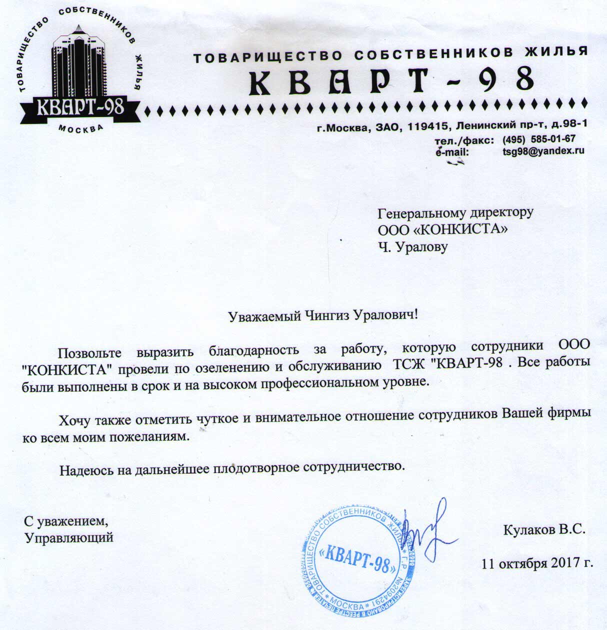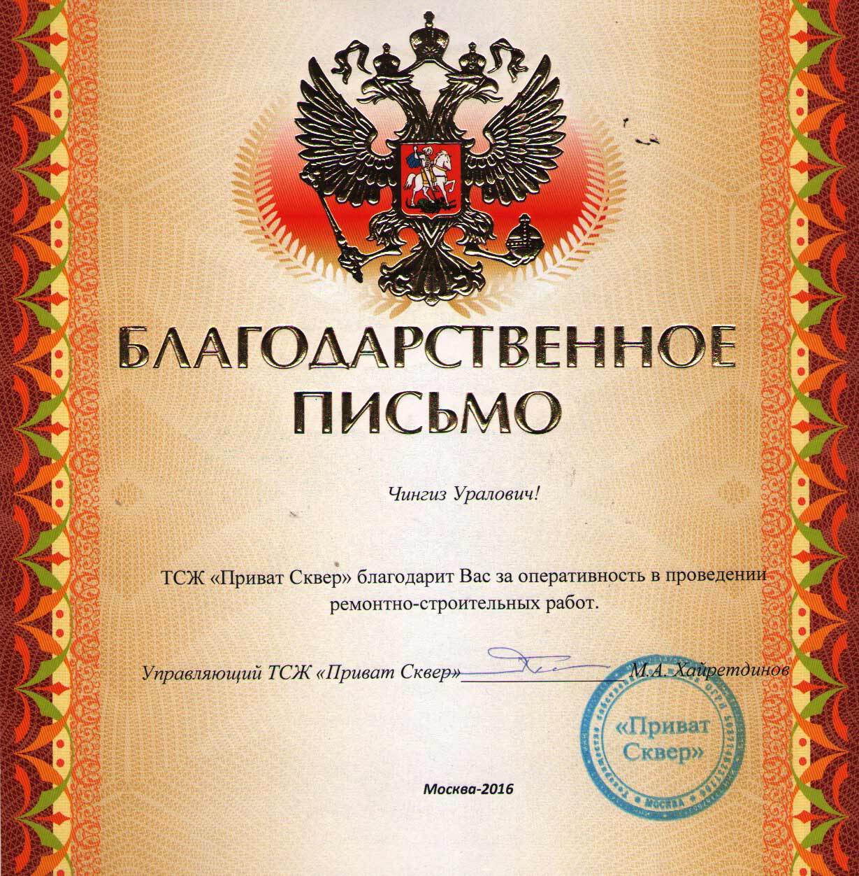 Отзыв ТСЖ “Приват Сквер”