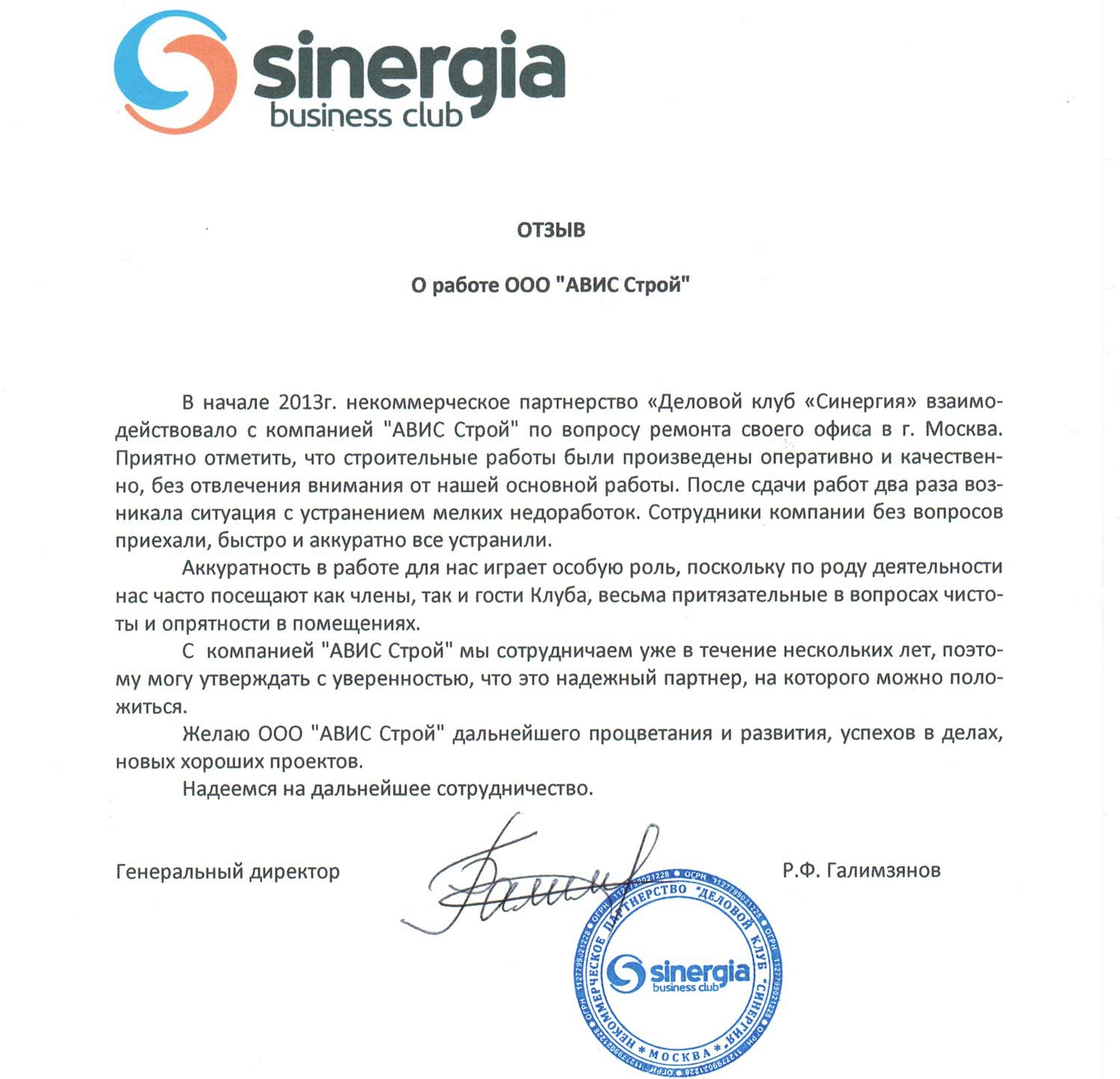 Отзыв бизнес клуба “Синергия”