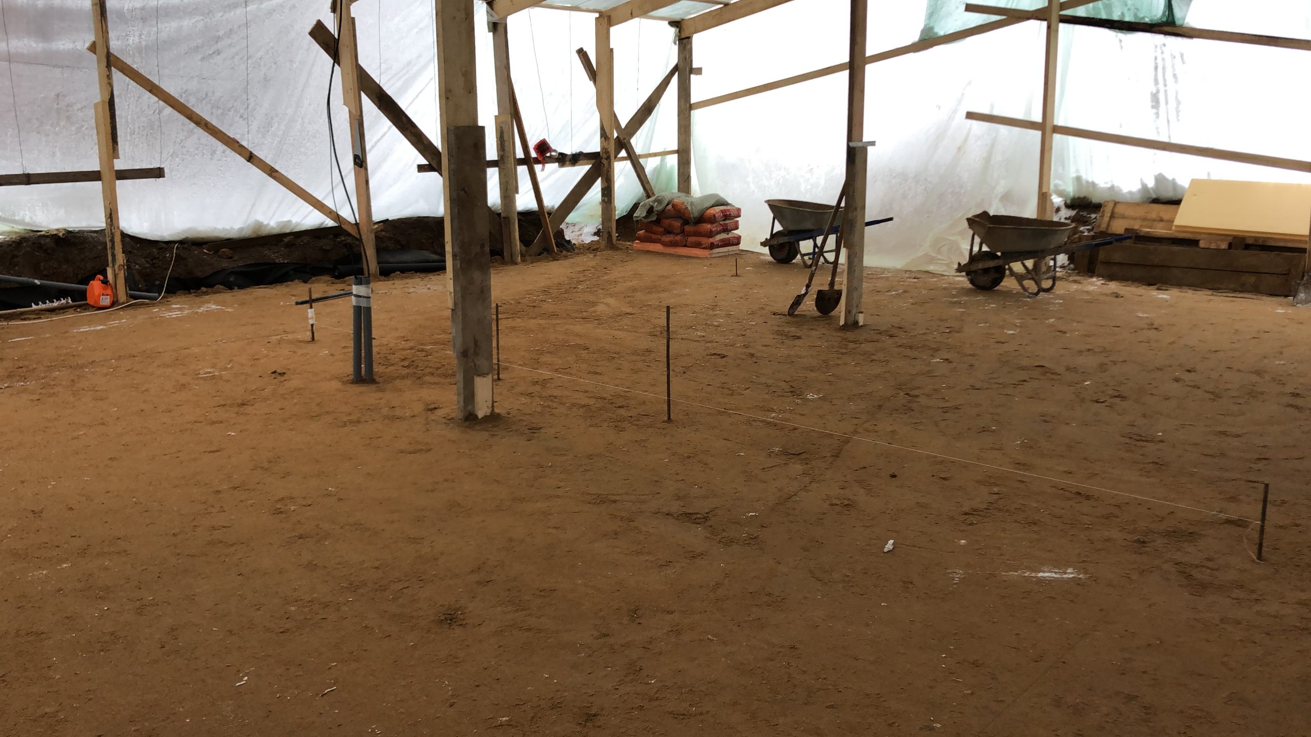 При заливке бетона используется греющий кабель во избежание промерзания бетона и потери им прочностных свойств. После набора бетоном прочности выстраиваются стены, монтируется кровля и устанавливаются окна. Затем начинаются внутренние работы, в том числе работы по монтажу парной.